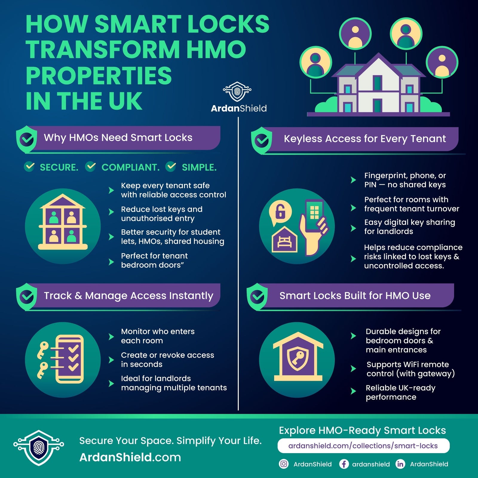 Discover how smart locks can transform your HMO, student let, or multi-occupancy property. Learn how UK landlords use ArdanShield smart locks for keyless entry, remote access, tenant PIN codes, and total control. Reduce costs and boost security instantly.