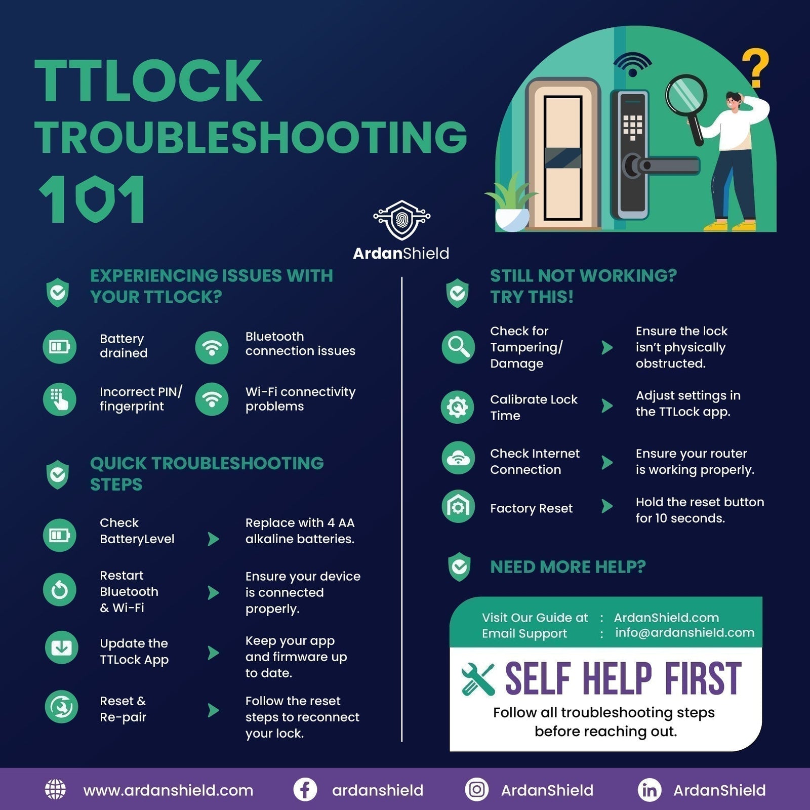 Having trouble with your TTLock? Our UK-focused troubleshooting guide from ArdanShield helps you fix Bluetooth, PIN, and Wi-Fi gateway issues fast. Includes expert tips for uPVC and composite doors, cold weather fixes, and advice on when it’s time to upgrade to a smarter, more reliable lock.